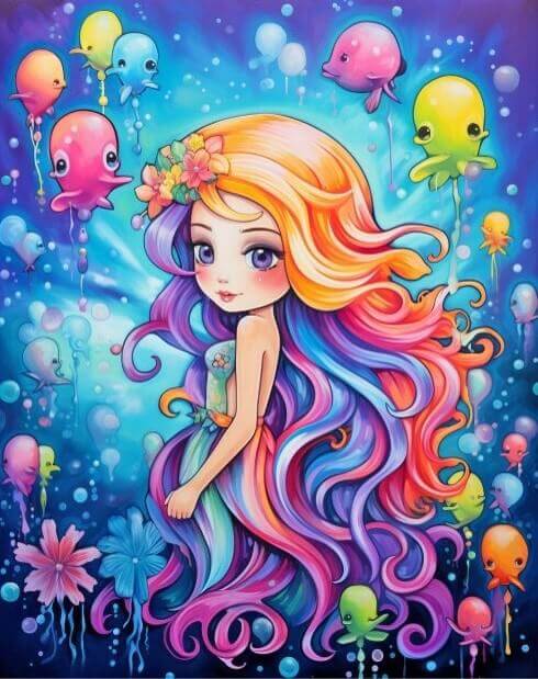 Plongez dans un univers vibrant avec cette magnifique sirène, un modèle riche en nuances et en détails, parfait pour toutes les amoureuses et amoureux du Diamond Painting.